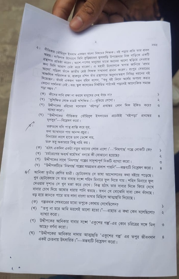 এসএসসি বাংলা প্রথম পত্র পরীক্ষার প্রশ্নপত্র দেখুন এখানে...
