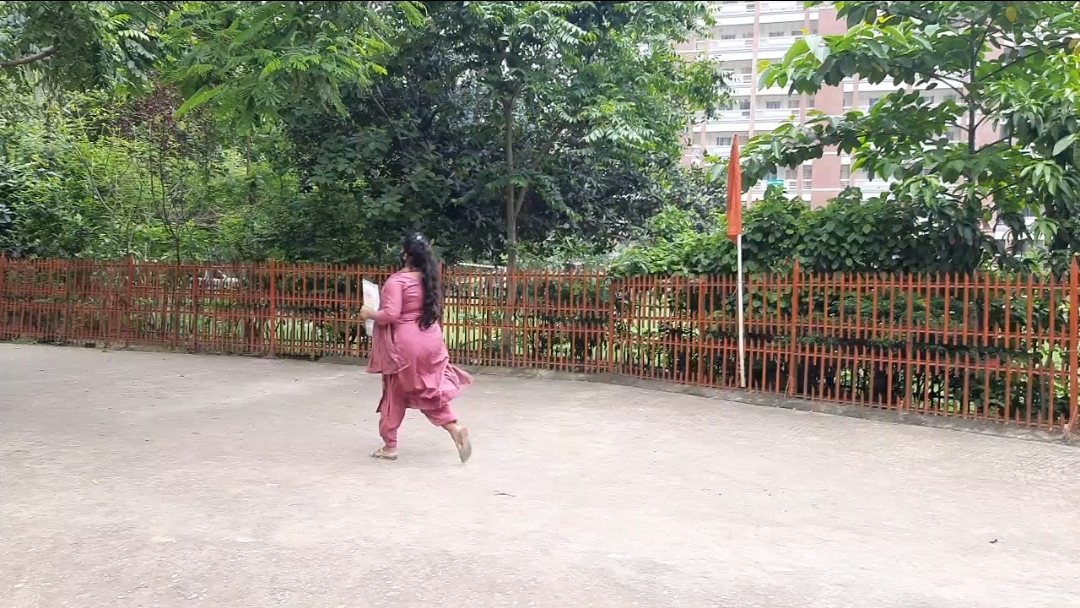 ৩৫ মিনিট দেরিতে এসে দৌঁড়ে কেন্দ্রে প্রবেশ করছেন রোশনি