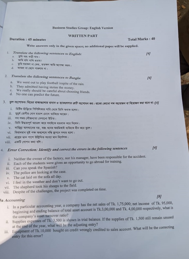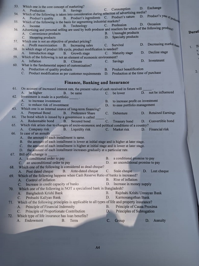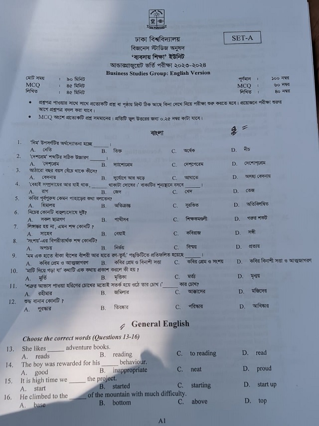 ঢাবির ব্যবসায় শিক্ষা ইউনিটের ভর্তি পরীক্ষার প্রশ্নপত্র দেখুন