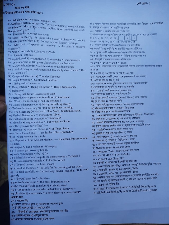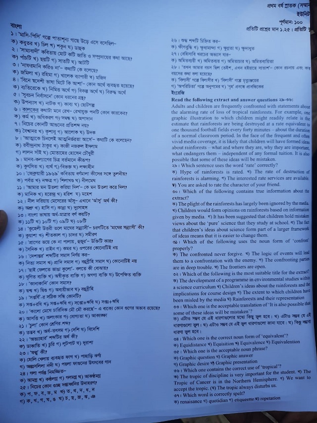 ‘এ’ ইউনিটের প্রশ্নপত্র দেখুন নিচে-