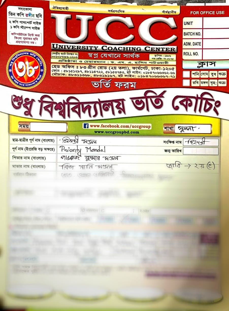 ইউসিসি ভর্তির ফরম