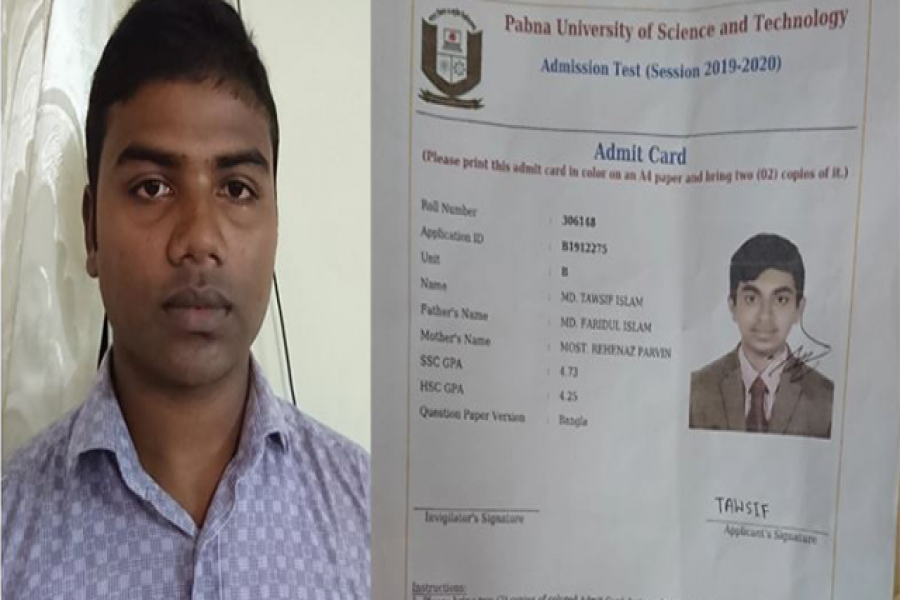 জানা যায়, পাবিপ্রবি ক্যাম্পাসসহ শহরের ১৫টি কেন্দ্রে শুক্রবার সকালে ‘এ’ ইউনিট এবং বিকেলে ‘বি’ ইউনিটের পরীক্ষা অনষ্ঠিত হয়। বিকেলে ‘বি’ ইউনিটের পরীক্ষা চলাকালে শহরের সেন্ট্রাল গার্লস হাইস্কুল কেন্দ্রে তওসিফ ইসলামের হয়ে পরীক্ষা দিচ্ছিলেন সবুজ আলী।