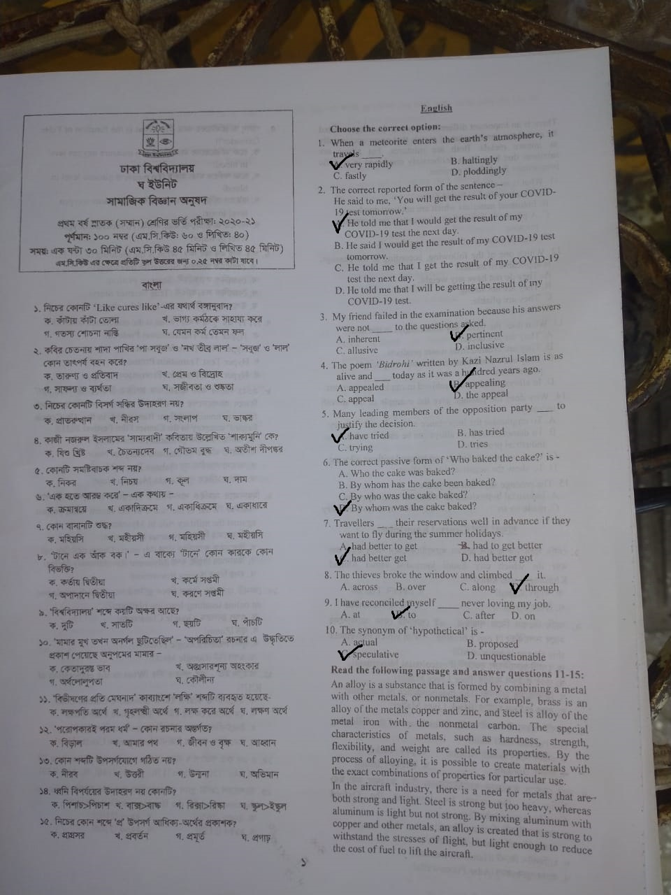 দেখুন: ঢাবি ভর্তি: ‘ঘ’ ইউনিটের বাংলা অংশের সমাধান