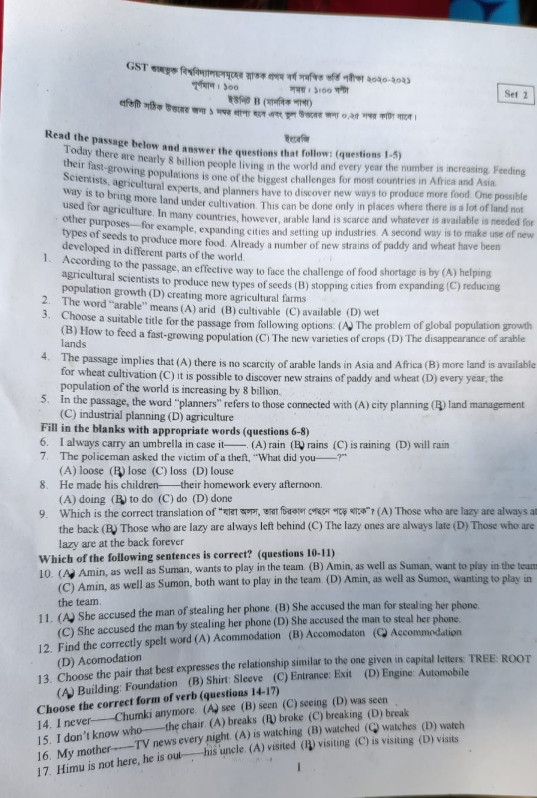 গুচ্ছের ‘বি’ ইউনিটের প্রশ্ন দেখুন এখানে