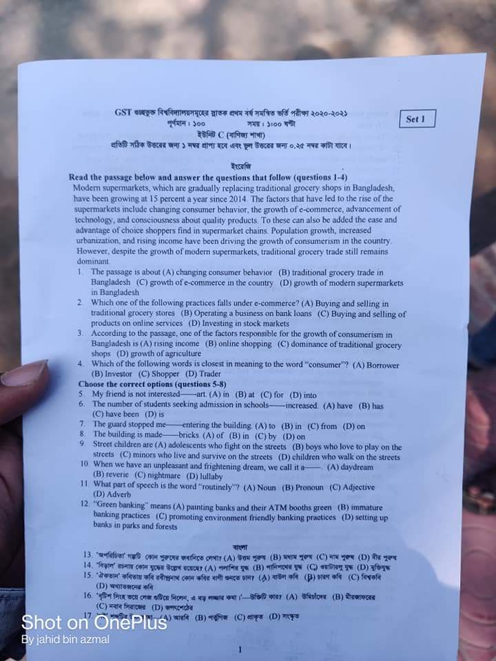 নিচে দ্যা ডেইলি ক্যাম্পাসের পাঠকদের জন্য ‘সি’ ইউনিটের প্রশ্ন তুলে ধরা হলো-