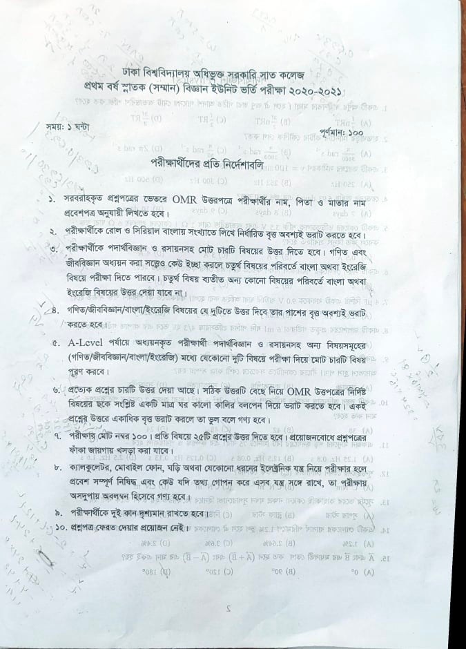 ঢাকা বিশ্ববিদ্যালয় অধিভুক্ত সরকারি সাত কলেজের ২০২০-২০২১ শিক্ষাবর্ষে ‘বিজ্ঞান’ ইউনিটের ১ম বর্ষের স্নাতক (সম্মান) শ্রেণির ভর্তি পরীক্ষা শেষ হয়েছে। ভর্তি পরীক্ষা উপলক্ষ্যে ঢাকা বিশ্ববিদ্যালয় উপাচার্য অধ্যাপক ড. মো. আখতারুজ্জামান ইডেন কলেজ পরীক্ষা কেন্দ্র পরিদর্শন করেন।