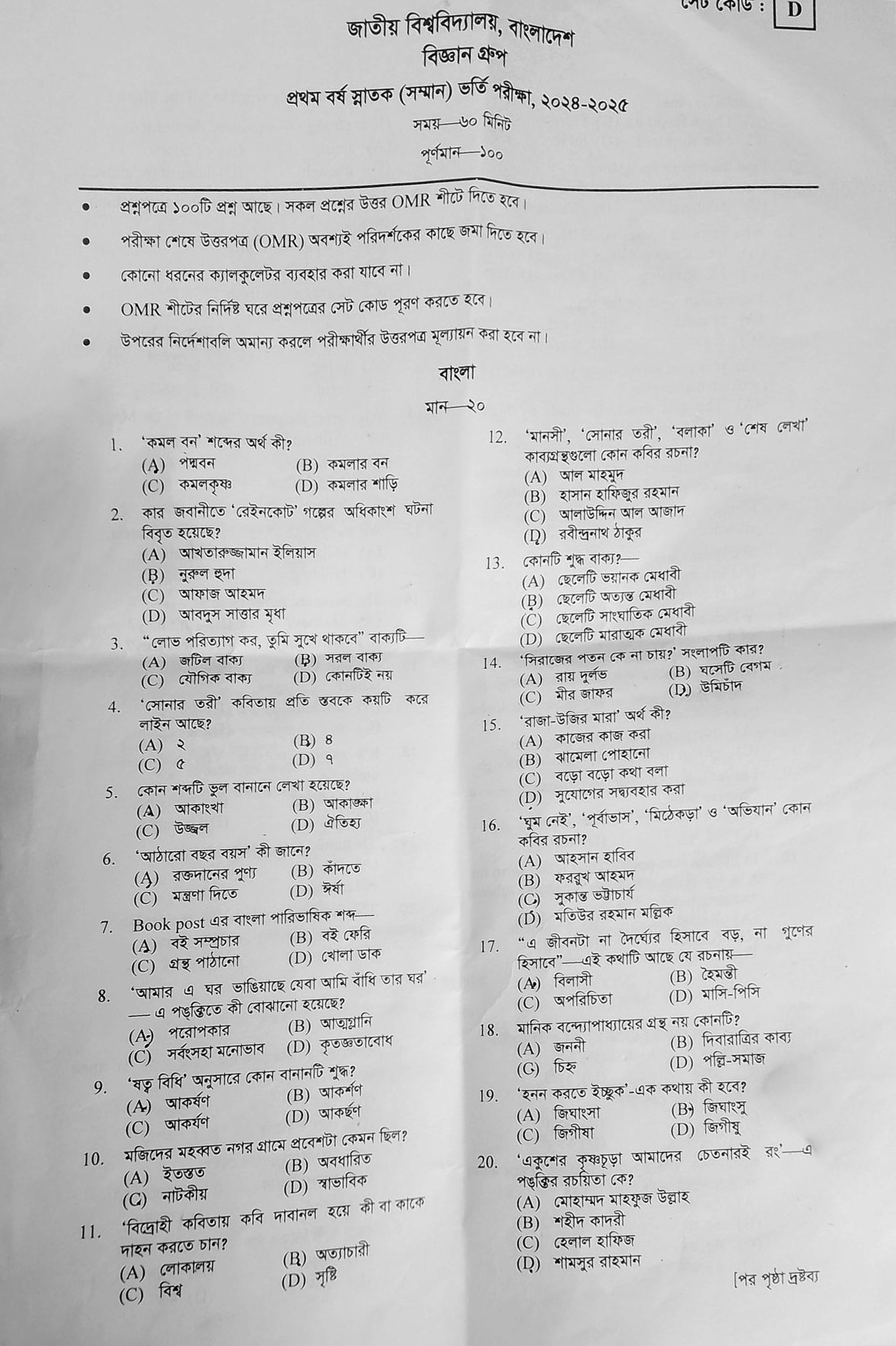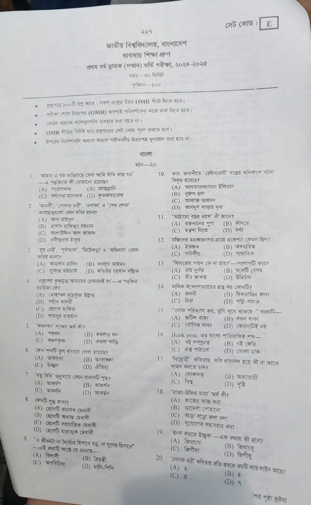 জাতীয় বিশ্ববিদ্যালয়ের ভর্তি পরীক্ষার প্রশ্ন দেখুন এখানে