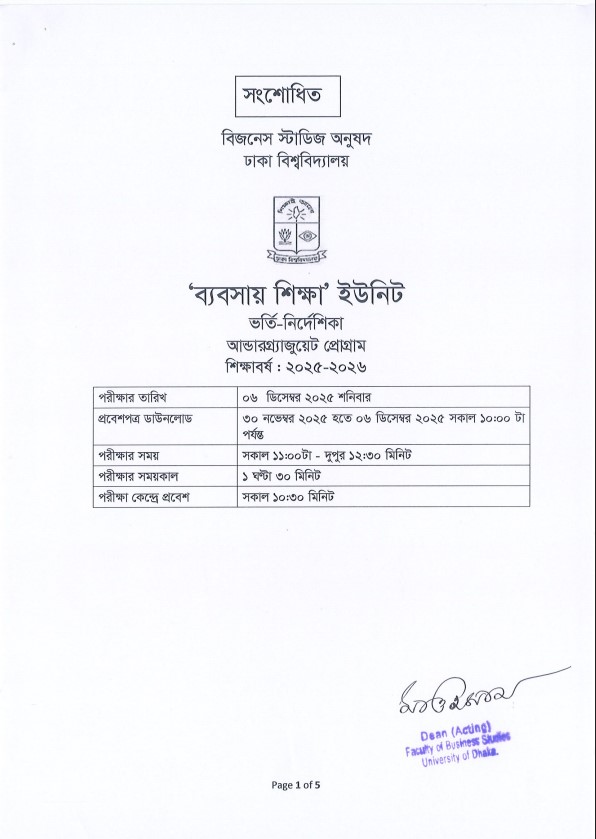 ঢাবির ‘ব্যবসায় শিক্ষা ইউনিট’র ভর্তি পরীক্ষা শনিবার, জেনে নিন খুঁটিনাটি