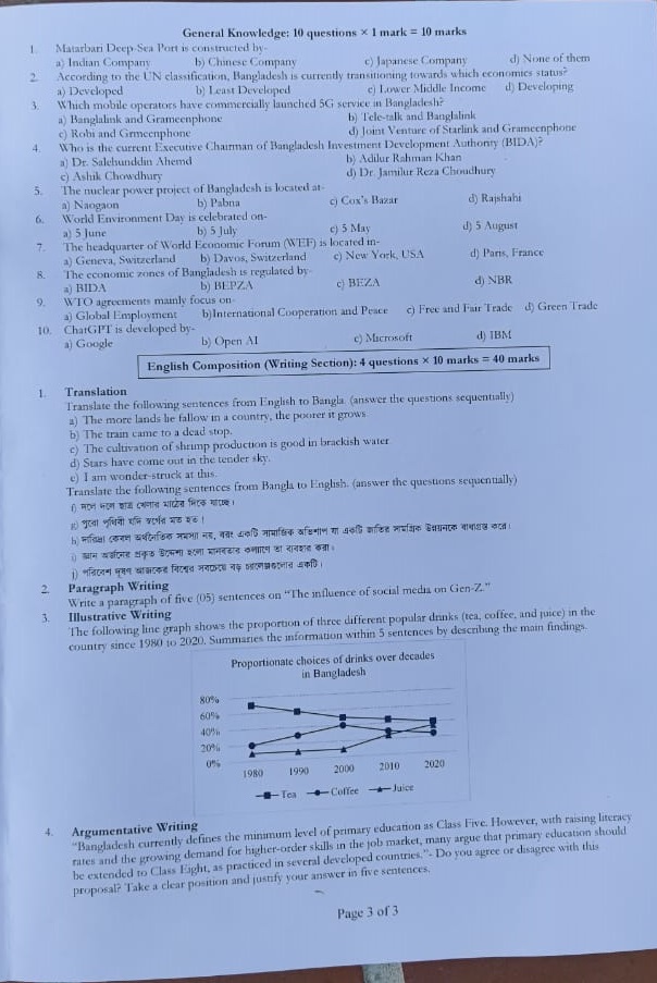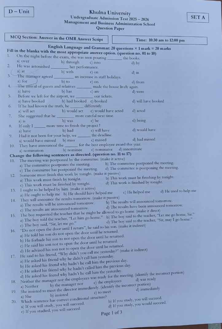 খুবির ‘ডি’ ইউনিটের ভর্তি পরীক্ষা শেষ, প্রশ্নপত্র দেখুন