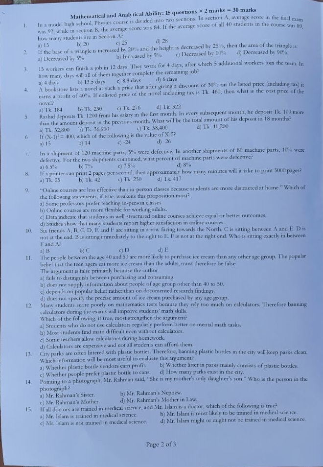 এ ইউনিটের পরীক্ষার প্রশ্নপত্র দ্য ডেইলি ক্যাম্পাসের হাতে এসেছে। দেখে নিন-