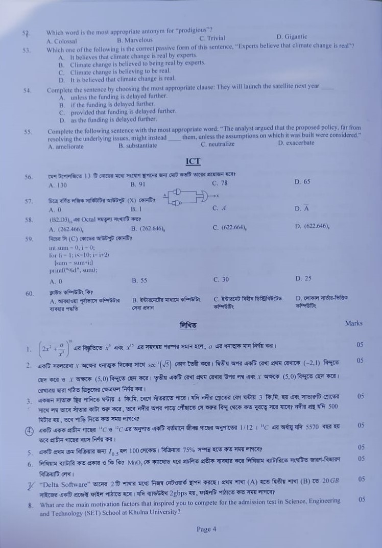 খুবি ‘এ’ ইউনিটের ভর্তি পরীক্ষা শেষ, প্রশ্ন দেখুন