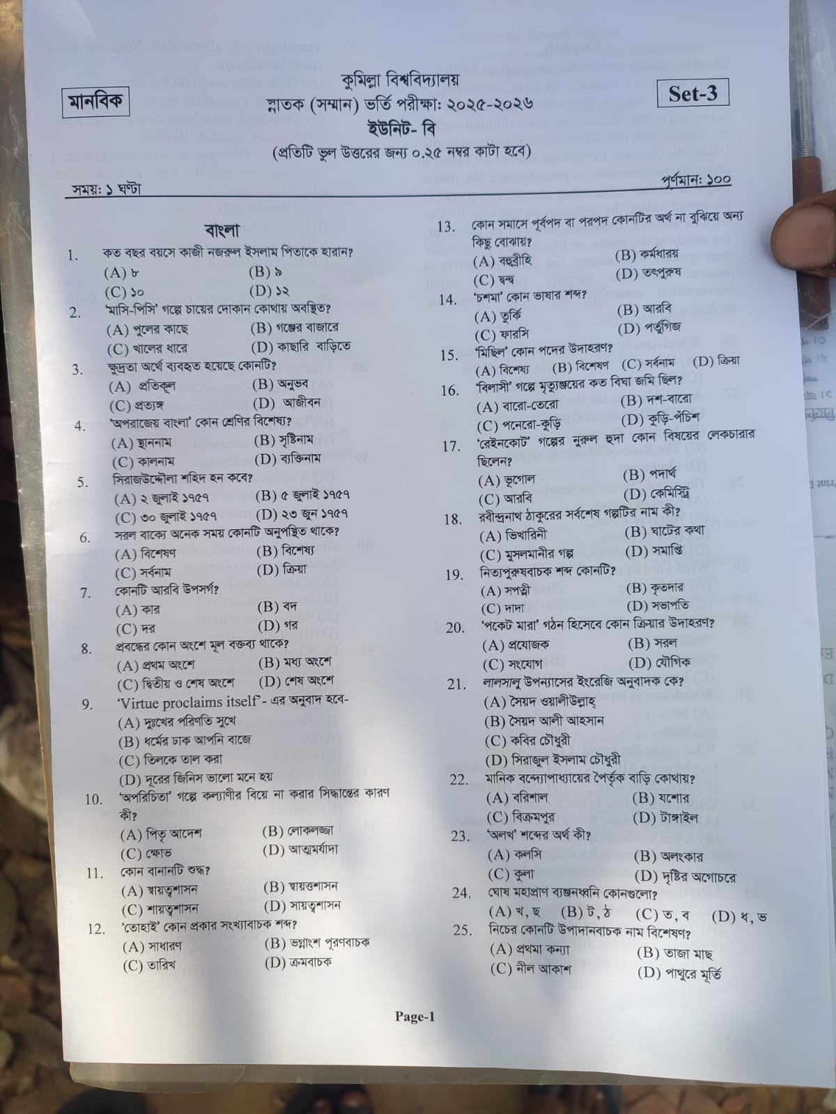 ‘বি’ ইউনিটের ভর্তি পরীক্ষা সকাল ১১টা থেকে দুপুর ১২টা পর্যন্ত অনুষ্ঠিত হবে। ভর্তি পরীক্ষা এক ঘণ্টার ১০০ নম্বরের এমসিকিউ পদ্ধতিতে নেওয়া হবে। প্রতিটি ভুল উত্তরের জন্য ০.২৫ নম্বর কাটা হবে এবং ন্যূনতম পাশ নম্বর ৩৩ নির্ধারণ করা হয়েছে।