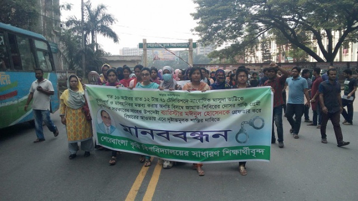 মাসুদা ভাট্টিকে কুরুচিপূর্ণ মন্তব্যের প্রতিবাদে শেকৃবিতে শিক্ষার্থীদের মানববন্ধন