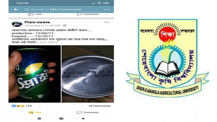 শেরেবাংলা কৃষি বিশ্ববিদ্যালয়ের (শেকৃবি) শেরেবাংলা হলে স্বাধীনতা দিবস উপলক্ষে উন্নত খাবারে মেয়াদোত্তীর্ণ কোমল পানীয় (ড্রিংকস) সরবরাহ করা হয়েছে। দুই বছর আগের মেয়াদোত্তীর্ণ সকল কোমল পানীয় ‘স্প্রাইট’ ব্রান্ডের। মেয়াদোত্তীর্ণ এসব কোমল পানীয় সরবরাহে সাধারণ শিক্ষার্থীদের মধ্যে চাপা ক্ষোভ বিরাজ করছে। সামাজিক যোগাযোগ মাধ্যম ফেসবুকে হল কর্তৃপক্ষের বিরুদ্ধে উঠেছে সমালোচনার ঝড়।