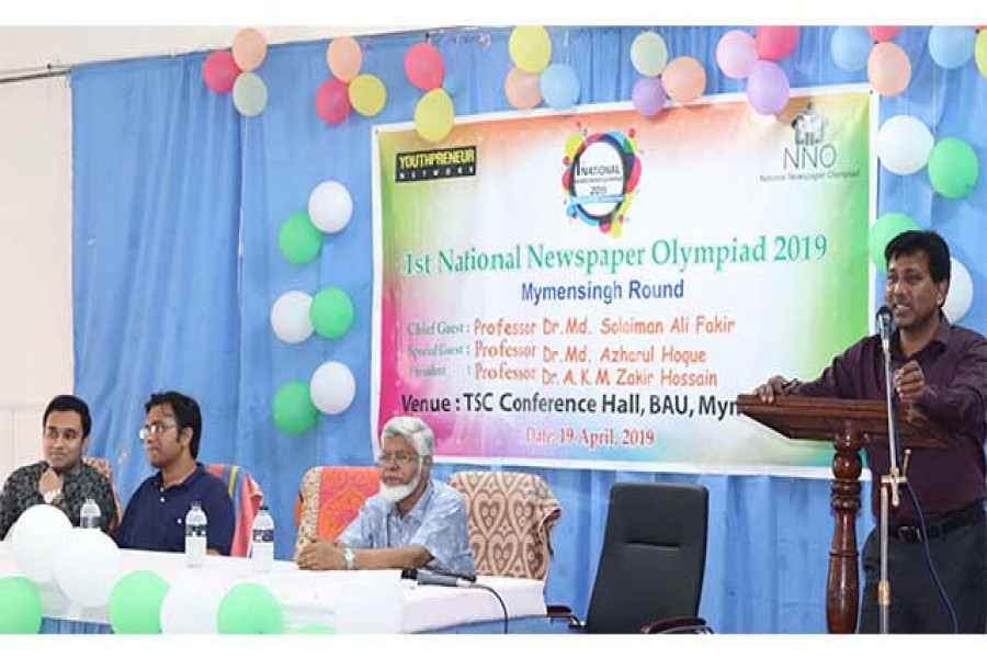 শুক্রবার ময়মনসিংহ বিভাগীয় ন্যাশনাল নিউজ পেপার অলিম্পিয়াডের সিলেকশন রাউন্ডে প্রধান অতিথির বক্তব্যে এসব কথা বলেন বাংলাদেশ কৃষি বিশ্ববিদ্যালয়ের (বাকৃবি) ছাত্র বিষয়ক উপদেষ্টা অধ্যাপক ড. মো. ছোলায়মান আলী ফকির।