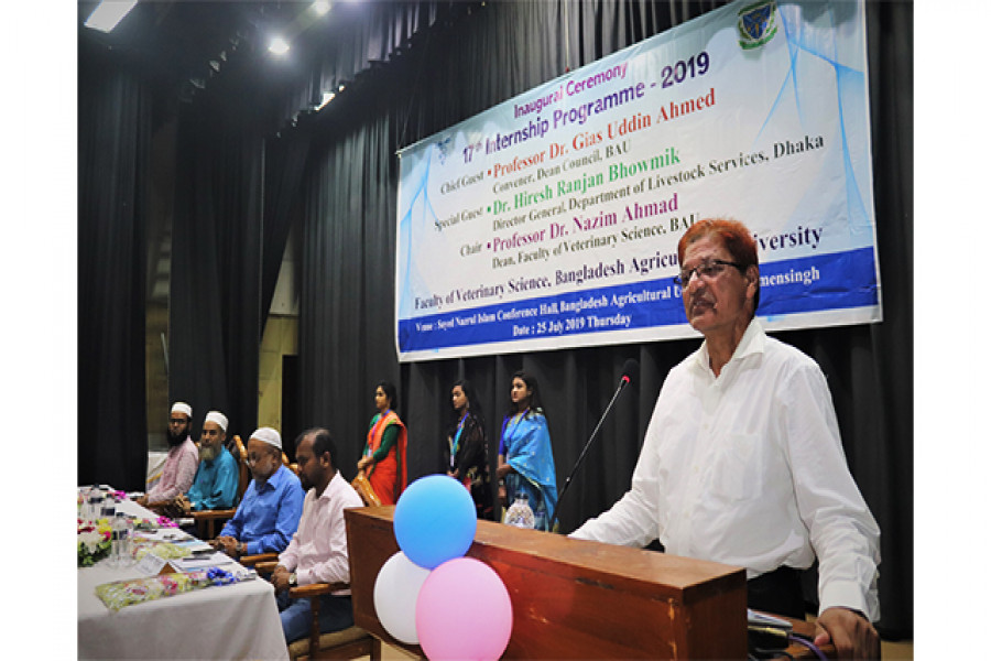 বাংলাদেশ কৃষি বিশ্ববিদ্যালয়ে (বাকৃবি) ভেটেরিনারি অনুষদের ৫৪তম ব্যাচের শিক্ষার্থীদের ১৭তম ইন্টার্নশিপের উদ্বোধন করা হয়েছে। বৃহস্পতিবার সকাল ১১টায় বিশ্ববিদ্যালয়ের সৈয়দ নজরুল ইসলাম সম্মেলন কক্ষে ওই ইন্টার্নশিপের উদ্বোধন করা হয়। ইন্টার্নশিপের উদ্বোধন ঘোষণা করেন অনুষ্ঠানের প্রধান অতিথি ডিন কাউন্সিলের আহবায়ক অধ্যাপক ড. গিয়াস উদ্দিন আহমদ।