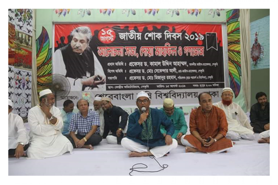 বৃহস্পতিবার (১৫ আগস্ট) শেরেবাংলা কৃষি বিশ্ববিদ্যালয়ে (শেকৃবি) কেন্দ্রীয় মিলনায়তনে জাতির জনক বঙ্গবন্ধু শেখ মুজিবুর রহমানের ৪৪ তম শাহাদাৎ বার্ষিকী ও জাতীয় শোক দিবস উপলক্ষে আয়োজিত আলোচনা সভায় প্রধান অতিথির বক্তব্যে শেকৃবি উপাচার্য অধ্যাপক ড. কামাল উদ্দিন আহাম্মদ এসব কথা বলেন।