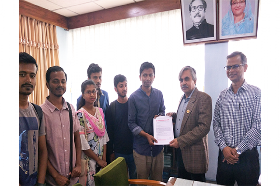 বুধবার দুপুরে উপাচার্যের কার্যালয়ে এ স্বারকলিপি দেন তারা। এ সময় বিশ্ববিদ্যালয়ের ছাত্রবিষয়ক উপদেষ্টা অধ্যাপক ড. মো. ছোলায়মান আলী ফকির এবং প্রক্টর অধ্যাপক ড. মো. আজহারুল হক উপস্থিত ছিলেন।