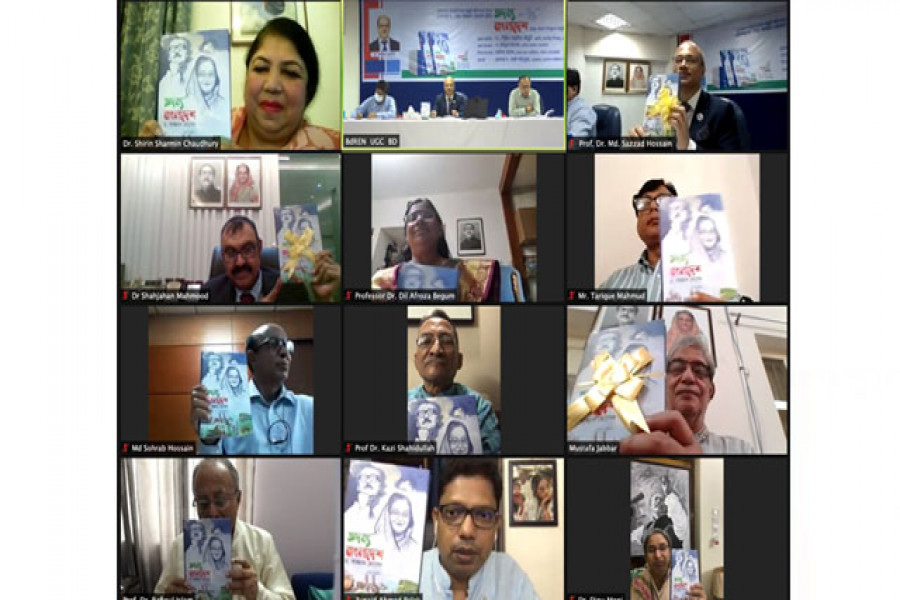 বিশিষ্ট তথ্য প্রযুক্তিবিদ ও বাংলাদেশ বিশ্ববিদ্যালয় মঞ্জুরী কমিশনের (ইউজিসি) সদস্য অধ্যাপক ড. মো. সাজ্জাদ হোসেন রচিত ‘অদম্য বাংলাদেশ’ শীর্ষক গ্রন্থের মোড়ক উম্মোচন করছেন জাতীয় সংসদের স্পিকার ড. শিরীন শারমীন চৌধুরী। আজ বুধবার (৩০ সেপ্টেম্বর) জুম প্লাটফর্মে আয়োজিত এক অনুষ্ঠানে তিনি গ্রন্থটির মোড়ক উম্মোচন করেন।