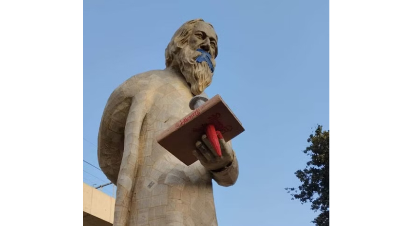 দেশে সাম্প্রতিক সময়ে আরোপিত সেন্সরশিপ ও নিপীড়নের ঘটনার প্রতিবাদে ঢাকা বিশ্ববিদ্যালয়ের (ঢাবি) টিএসসির বইমেলার প্রবেশমুখে রবীন্দ্রনাথ ঠাকুরের একটি প্রতিবাদী ভাস্কর্য স্থাপন করেছেন শিক্ষার্থীরা। আজ মঙ্গলবার রাজু ভাষ্কর্যের পাদদেশে এ ভাস্কর্য উন্মোচন করা হয়।