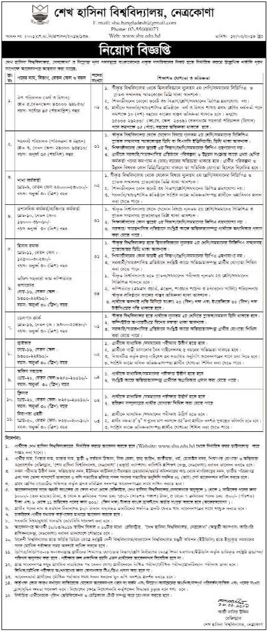 বিশাল নিয়োগ বিজ্ঞপ্তি ছেড়েছে নেত্রকোনার শেখ হাসিনা বিশ্ববিদ্যালয়। উপ-পরিচালকল, সহকারী পরিচালক, শাখা কর্মকর্তাসহ বিভিন্ন পদে এই নিয়োগ হবে। ১১ পদের নিয়ে বিস্তারিত তুলে ধরা হলো-
