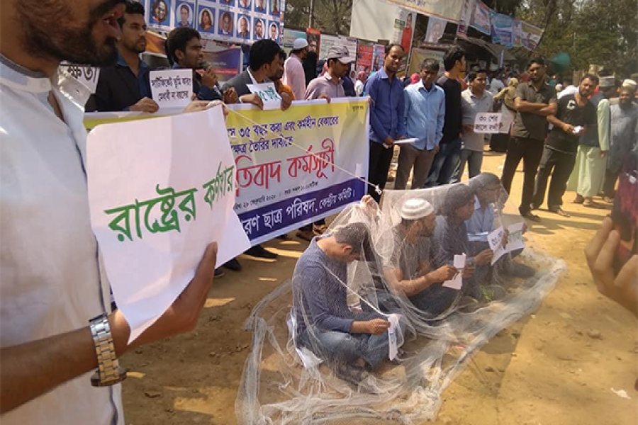 প্রসঙ্গত, চাকরিতে প্রবেশের বয়সসীমা ৩৫ বছর করার দাবিতে ২০১২ সাল থেকে আন্দোলন করে আসছেন চাকরিপ্রার্থীরা। তবে জাতীয় সংসদে কণ্ঠভোটে নাকচ হয়েছে ৩৫-এর সব চাওয়া-পাওয়া। তারপরও আন্দোলন থেকে সরে আসেননি আন্দোলনকারীরা। সাংগঠনিকভাবে কিছুটা গুছিয়ে উঠে নতুন কর্মসূচি ঘোষণা করেন তারা। এ প্রক্রিয়ায় রয়েছেন আন্দোলনকারীদের সংগঠক ফেরদৌস জিন্নাহ লেলিন, সঞ্জয় দাসসহ আরও অনেকে।