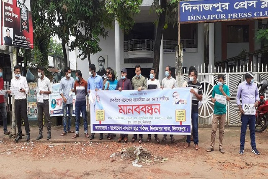 দিনাজপুরের মানববন্ধনে অংশ নেন বাংলাদেশ সাধারণ ছাত্র পরিষদ কেন্দ্রীয় কমিটির সভাপতি ইমতিয়াজ হোসেন। তিনি বলেন, ‘আমাদের দাবির পক্ষে সারাদেশে জনসমর্থন তৈরি হয়েছে। চাকরিপ্রার্থীরা চান চাকরিতে প্রবেশের বয়স ৩৫ বছর করা হোক। অন্যথায় সারাদেশে গণজোয়ার সৃষ্টি করে শিগগিরই শাহবাগে বড় জমায়েত করা হবে।’