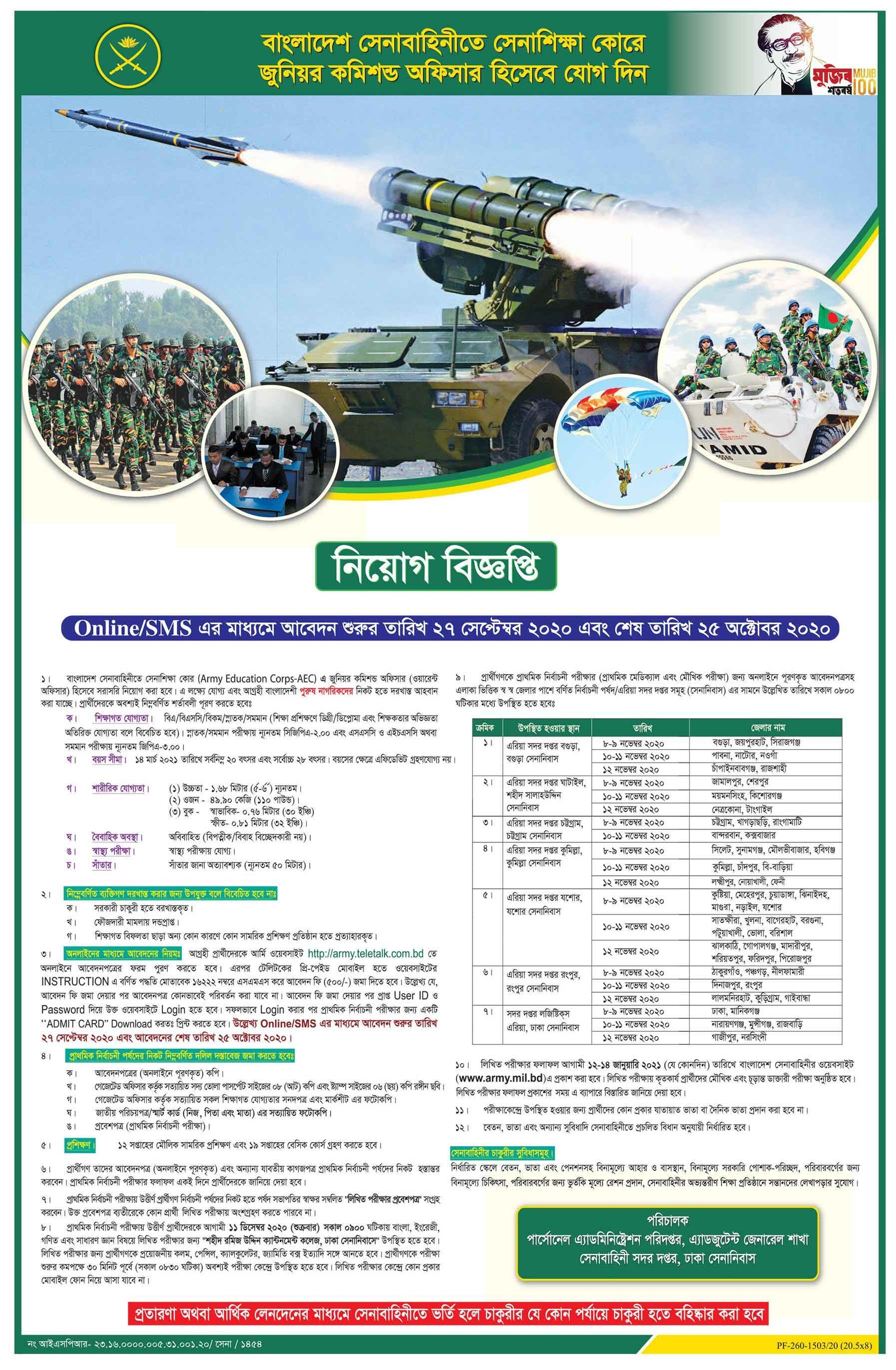 সেনাবাহিনীতে অফিসার পদে চাকরির সুযোগ