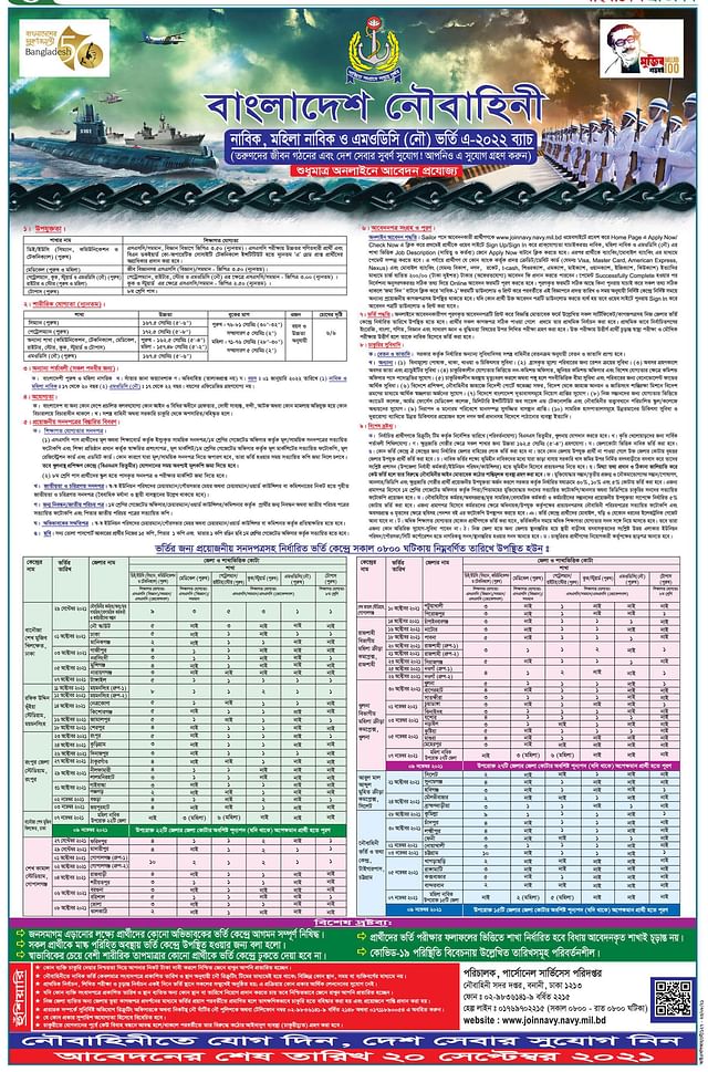 আবেদন পদ্ধতি: আগ্রহী প্রার্থীদের বাংলাদেশ নৌবাহিনীর নির্দিষ্ট ওয়েবসাইট www.joinnavy.navy.mil.bd তে গিয়ে আবেদন করতে হবে।