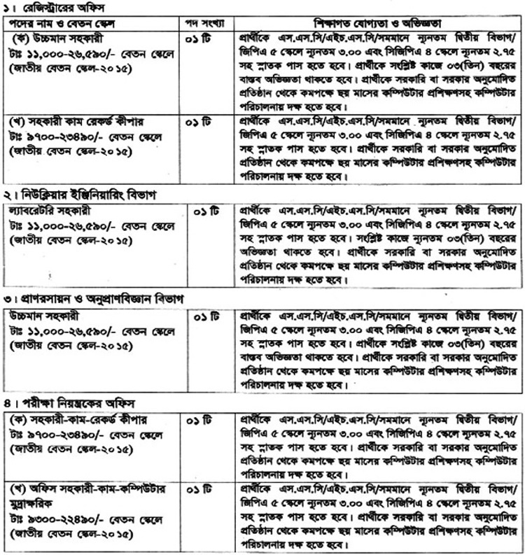 ঢাকা বিশ্ববিদ্যালয়ের দুইটি বিভাগ ও দুইটি অফিসে ৬টি পদে লোকবল নিয়োগ বিজ্ঞপ্তি প্রকাশ করেছে। আগ্রহীরা আগামী ৩১ নভেম্বর পর্যন্ত আবেদন করতে পারবেন।