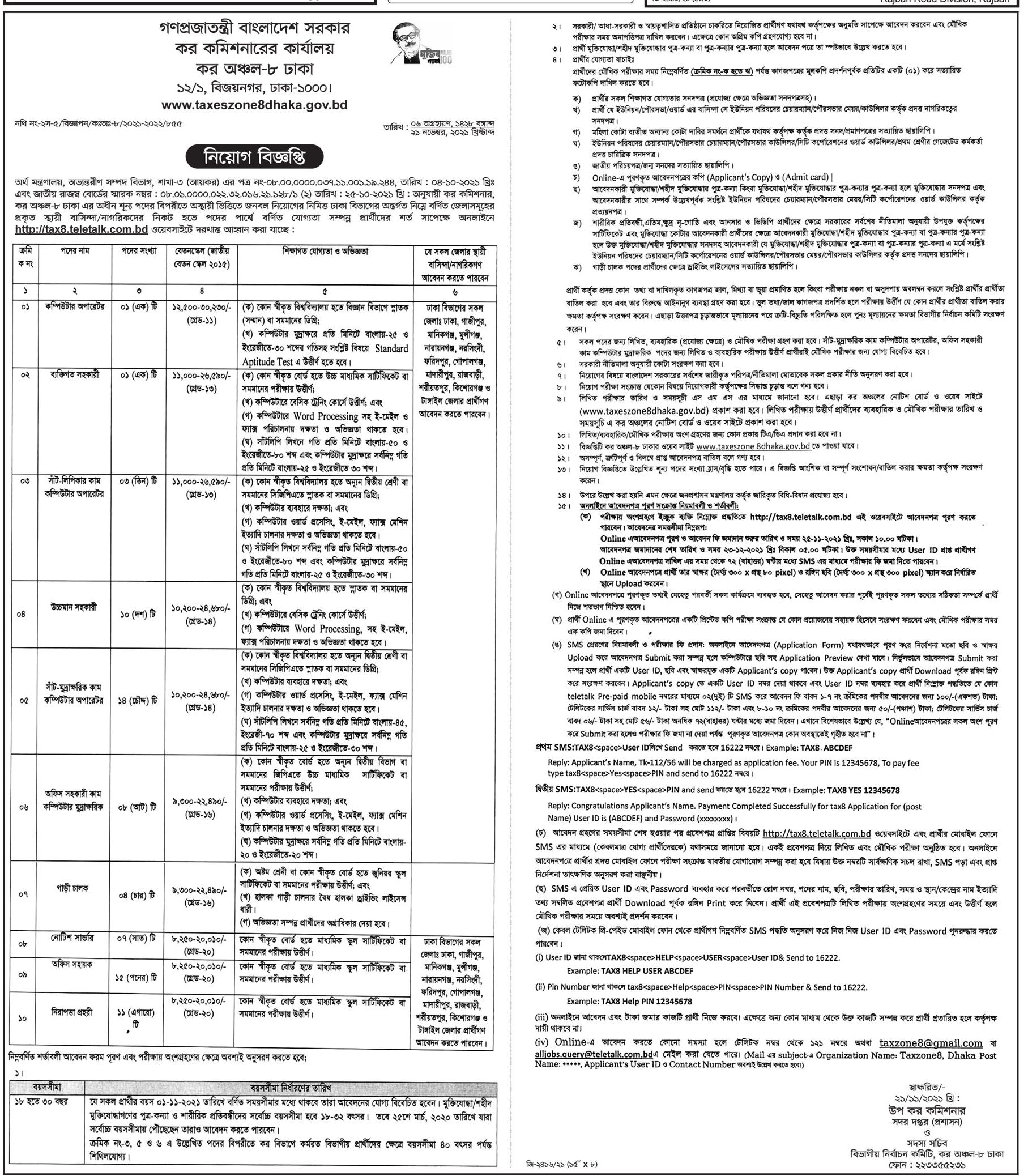 আবেদন যেভাবে: আগ্রহীরা অনলাইনে আবেদন করতে পারবেন http://tax8.teletalk.com.bd এখান থেকে আবেদন করতে পারবেন।