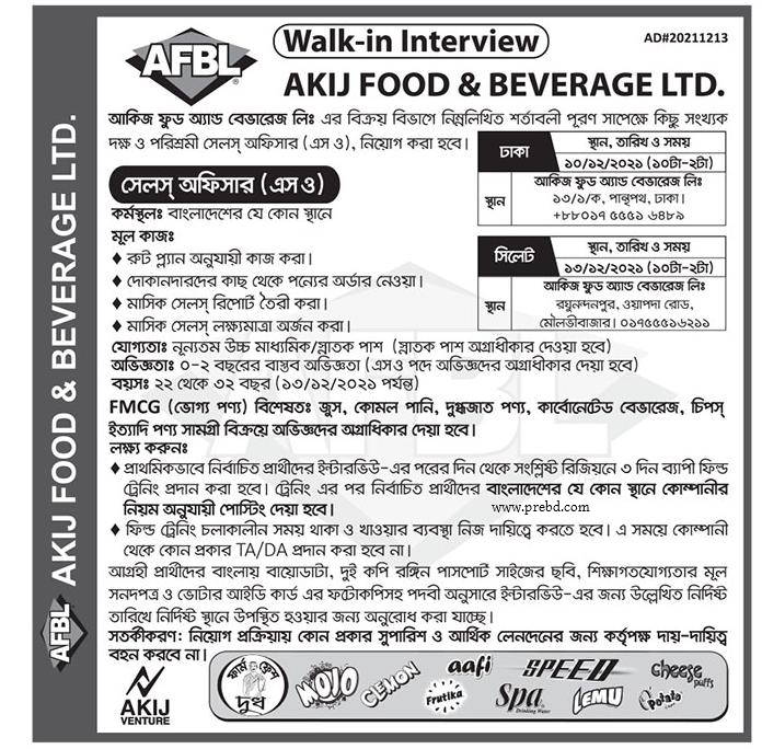 আকিজ ফুড অ্যান্ড বেভারেজ লিমিটেডে চাকরির সুযোগ