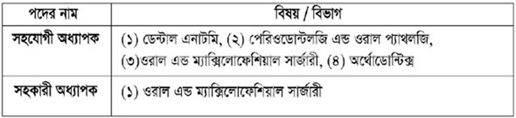আবেদনের ঠিকানা: অধ্যক্ষ, বাংলাদেশ ডেন্টাল কলেজ, বাড়ি নং ৩৩-৩৫, ধানমন্ডি আ/এ, ঢাকা-১২০৯।