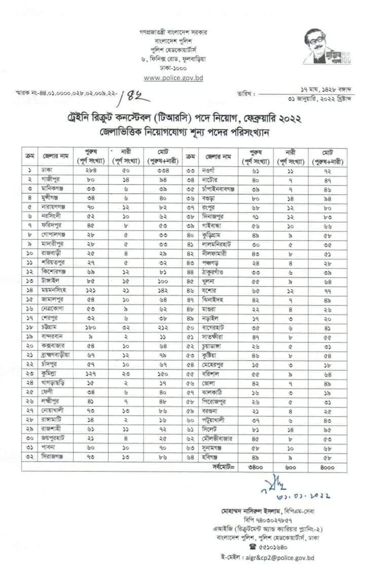 কনস্টেবলে ৪ হাজার নিয়োগ, শূন্যপদ কোন জেলায় কত (তালিকা)