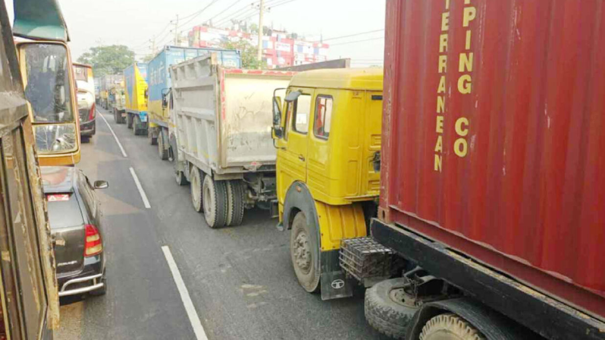 তিনি আরও বলেন, একটি কালভার্টের ওপর একটি কাভার্ড ভ্যান পড়ে যায়। এতে ঢাকামুখী লেন বন্ধ হয়ে যায়। কিছু গাড়ি উল্টো পথে ঢুকলে যানজট আরও বেড়ে যায়।