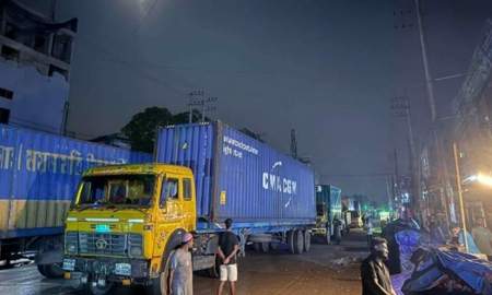 শুক্রবার রাত সাড়ে ১০টার দিকে এই দুর্ঘটনা ঘটে। এতে একটি কাভার্ডভ্যান চালক ও এক পথচারীর পা থেঁতলে যাওয়ায় তাদের অবস্থা আশঙ্কাজনক বলে জানা গেছে।