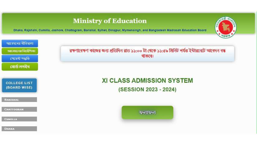 একাদশ ভর্তি আবেদনের ফল প্রকাশ