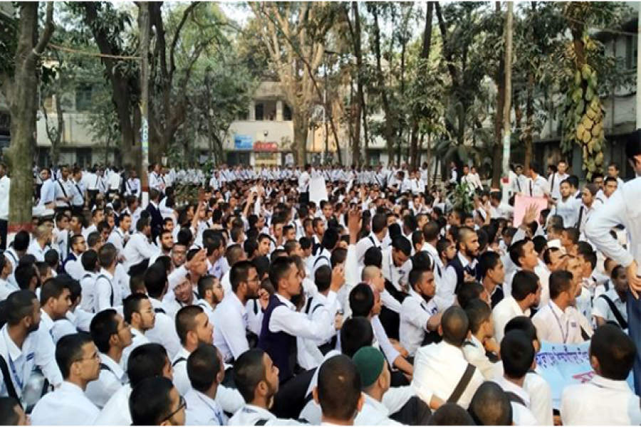 ৬ দফা দাবিতে বিক্ষোভ করেছেন ঢাকা কলেজের শিক্ষার্থীরা। সিটি কলেজের শিক্ষার্থীদের ছুরিকাঘাতে ঢাকা কলেজের পাঁচ শিক্ষার্থী আহতের ঘটনায় বিচারের দাবিতে এ কর্মসূচি পালন করছেন। বিক্ষোভে অংশ নেয়া সবাই ঢাকা কলেজের উচ্চ মাধ্যমিক শ্রেণির শিক্ষার্থী। দাবি মানা না হলে অনির্দিষ্টকালের জন্য ক্লাস, পরীক্ষা বর্জনের হুমকি দেন শিক্ষার্থীরা।