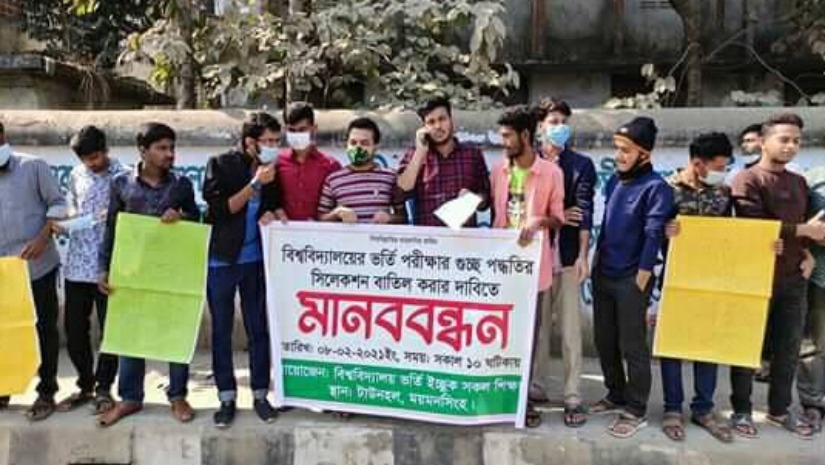 গুচ্ছ পদ্ধতির সিলেকশন বাতিলের দাবিতে ময়মনসিংহে মানববন্ধন