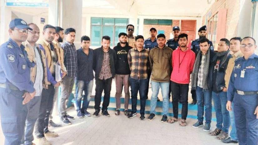 আটকরা হলেন- রংপুরের কাউনিয়া উপজেলার গেদ্দবালাপাড়া এলাকার ইদ্রিস আলীর ছেলে তাজুল ইসলাম (২৬), সদর উপজেলার ধনতলা পশ্চিমপাড়া গঞ্জিপুর অছিপাড়া এলাকার মোস্তাকিম আলীর ছেলে জাকারিয়া ওরফে রিপন (২৮), মিঠাপুকুর উপজেলার চিথলী দক্ষিণপাড়া এলাকার শাহ আলমের ছেলে মাহফুজার রহমান (১৯), একই উপজেলার মেহেদী হাসানের ছেলে ফুয়াদ হাসান (২২), হাতিমপুর এলাকার গোলাম মোস্তফার ছেলে জিসান শেখ (১৯), পীরগঞ্জ উপজেলার হাসানপুর এলকার জয়নাল আবেদীনের ছেলে জাবের আলী (২৫), একই উপজেলার আসমতপুর এলাকার খাজা নাজিম উদ্দিনের ছেলে মেজবাহ হামিদুল্লাহ প্রধান শুভ (২৬)। দিনাজপুরের জলেশ্বরী তলা এলাকার রতন লালের ছেলে পিন্টু লাল (২৬) ও ঠাকুরগাঁওয়ের কিসামত পাহাড়ভাঙ্গা এলাকার তরুণী সরকারের ছেলে পরিমল সরকার (২৮)।