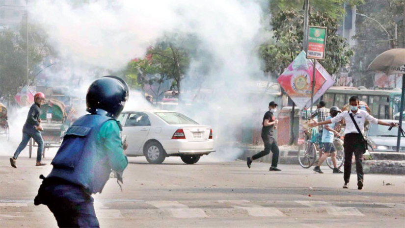 এতে আরও বলা হয়, রাস্তায় থাকা যানবাহনে ভাঙচুরের চেষ্টা করেন এবং রাস্তায় আগুন জ্বালিয়ে দেন। এসময় পুলিশকে লক্ষ্য করে নামধারী ছাত্ররা ইট-পাটকেল ছুড়তে থাকে। তারা সায়েন্সল্যাব মোড়ের পশ্চিম পাশের পুলিশ বক্সে ভাঙচুর চালান। এতে এক লাখ টাকার ক্ষতি হয়। তাদের ছোড়া ইট-পাটকেল ও লাঠিসোঁটার আঘাতে ছালেহীন ও এমরান নামে দুজন কনস্টেবল আহত হন। পরে তাদের হামলায় আরও সাতজন পুলিশ সদস্য আহত হন।