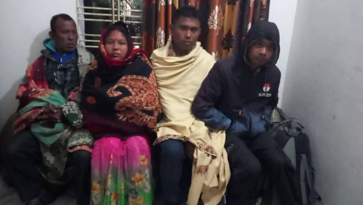 আটক ব্যক্তিরা হলেন ঠাকুরগাঁও জেলার সদর উপজেলার ধন্দুগাঁও এলাকার মনিরাম চন্দ্র বর্মণ (৫১), তাঁর স্ত্রী হিরা রাণী বর্মণ (৩৫), ছেলে রিপন চন্দ্র বর্মণ (২১), মেয়ে পাপড়ি রাণী বর্মন (১৩) ও মনিরামের ভাতিজা নিমাই চন্দ্র বর্মণ (২৩)। তবে মনিরামের মেয়ে পাপড়ি অপ্রাপ্তবয়স্ক হওয়ায় তাঁকে পরিবারের অন্য সদস্যদের হাতে হস্তান্তর করা হয়। এ ছাড়া অপর চারজনকে অবৈধ অনুপ্রবেশের দায়ে তেঁতুলিয়া থানায় মামলার প্রস্তুতি চলছে।