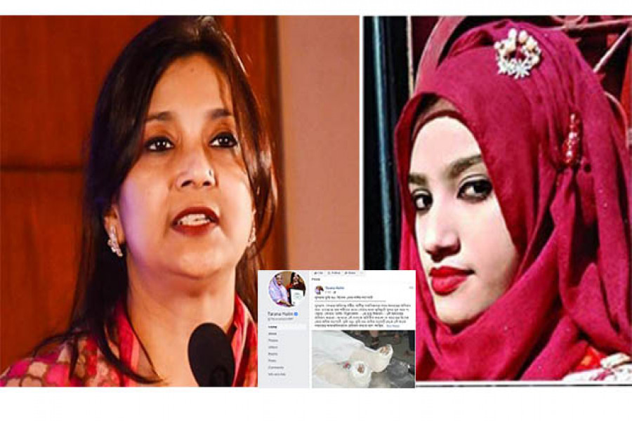 নুসরাতকে নিয়ে ফেসবুকে আবেগঘন স্ট্যাটাস দিয়েছেন সাবেক তথ্য প্রতিমন্ত্রী অ্যাডভোকেট তারানা হালিম। আজ তার ভেরিফায়েড ফেসবুক পেজে দেয়া স্ট্যাটাসটি তুলে ধরা হলো—