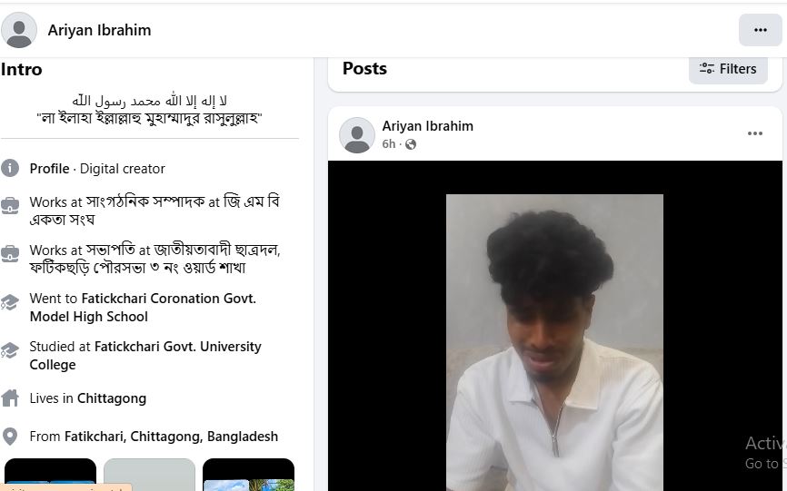 পোস্টকারীর বিষয়ে আমাদের সংগঠন জাতীয়তাবাদী ছাত্রদল ফটিকছড়ি পৌরসভা শাখার পক্ষ থেকে স্পষ্ট বক্তব্য হচ্ছে, ধর্মীয় মূল্যবোধে আঘাত হানা উগ্রবাদী মনোভাবের আরিয়ান ইব্রাহিম নামের কোনো ছেলে জাতীয়তাবাদী ছাত্রদলের রাজনীতির সাথে প্রত্যক্ষ ও পরোক্ষভাবে কোনোভাবে জড়িত নয়, তার এহেন ঘৃণিত নেক্কারজনক কর্মকান্ড ও নিজেকে জাতীয়তাবাদের ছাত্রদলের ফটিকছড়ি পৌরসভার ৩ নং ওয়ার্ড শাখার সভাপতি পরিচয় দান করার মত জঘন্য মিথ্যাছাড়ের তীব্র নিন্দা ও প্রতিবাদ জানাই।’
