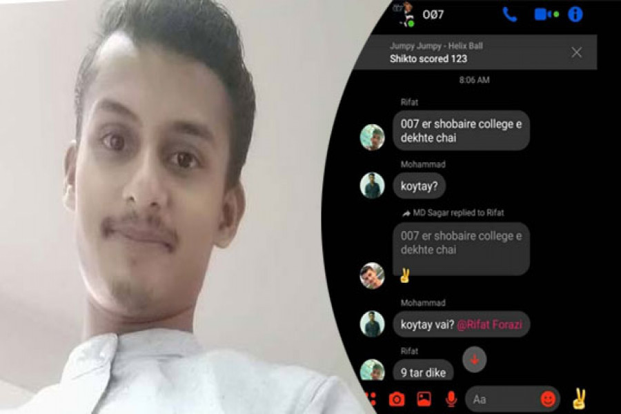 রিফাত হত্যার পরিকল্পনা নিয়ে ম্যাসেঞ্জার গ্রুপ ০০৭-এর কথোপকথনের ভাইরাল ও গণমাধ্যমে প্রকাশিত একটি স্ক্রিনশটে দেখা যায়, রিফাত শরীফ হত্যাকাণ্ডের দিন বুধবার সকাল ৮টা ৬ মিনিটে রিফাত হত্যা মামলার দুই নম্বর আসামি রিফাত ফরাজী গ্রুপে লেখেন, ‘০০৭ এর সবাইরে কলেজে দেখতে চাই।’ এর উত্তরে মোহাম্মাদ নামে একজন লেখেন, ‘কয়টায়।’ নয়ন ফরাজির লেখা ‘০০৭ এর সবাইরে কলেজে দেখতে চাই’- এর উত্তরে বরগুনায় পুলিশের কনেস্টবল পদে চাকরি পরীক্ষায় চূড়ান্তভাবে উত্তীর্ণ মো. সাগর সম্মতিজ্ঞাপনসূচক এবং বিজয়ের প্রতীক ভি (v) সিম্বল দিয়ে উত্তর দেন। এরপর মোহাম্মাদ আবার রিফাত ফরাজীকে ম্যানশন করে লেখেন ‘কয়টায় ভাই।’ এরপর রিফাত ফরাজী উত্তর দেন ‘৯টার দিকে।