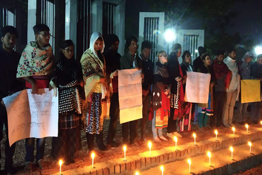 ধর্ষণের প্রতিবাদে বশেমুরবিপ্রবিতে মোমবাতি প্রজ্বলন