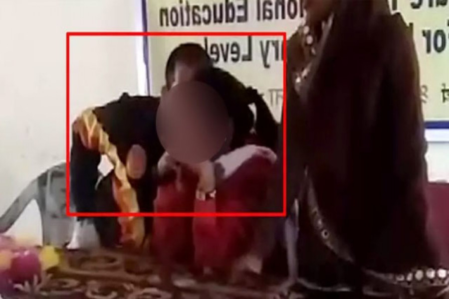 জানা যায়, ছাত্রছাত্রীদের নিয়ে চলছে কর্মশালা। সেখানে এক শিক্ষিকা ছাত্রীদের বোঝাচ্ছেন, পড়াশোনা কী ভাবে ছাত্রীদের স্বাধীন হওয়ার পক্ষে সহায়ক ভূমিকা পালন করে। পাশের চেয়ারে বসে আছেন আরও একজন শিক্ষিকা। এসময় প্রবেশ করেন সেই স্কুলের একজন শিক্ষক। পরে বসে থাকা শিক্ষিকার গালে মাথা ঝুঁকিয়ে চুম্বন করলেন তিনি। এঘটনায় হকচকিয়ে গেলেন ওখানে উপস্থিত থাকা সকলেই। পরে সোশ্যাল মিডিয়ার বিভিন্ন প্ল্যাটফর্মে এই ঘটনার ভিডিও ছড়িয়ে পড়েছে। তখন থেকেই বিষয়টি নিয়ে হইচই শুরু হয়েছে সে রাজ্যের বিভিন্ন মহলে।