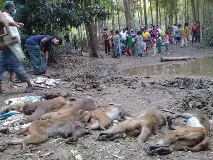মাদারীপুরের চরমুগুরিয়া এলাকায় বিষ প্রয়োগ করে ১১টি বানরকে হত্যা করেছে দুর্বৃত্তরা। এরমধ্যে একটি বানরকে অসুস্থ অবস্থায় উদ্ধার করা হয়েছে। মঙ্গলবার বিকেলে বানরগুলোকে চরমুগুরিয়া গ্রামে মৃত অবস্থায় পাওয়া যায়। একটি বানরকে গুরুতর অসুস্থ অবস্থায় উদ্ধার করে প্রাণিসম্পদ হাসপাতালে নেওয়া হয়েছে। দিনের কোনো একসময় এ ঘটনা কেউ ঘটিয়েছে বলে ধারণা করা হচ্ছে।