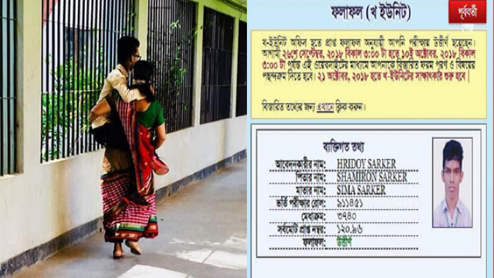 ঢাবিতে মায়ের কোলে করে ভর্তি পরীক্ষা দিতে আসা হৃদয় চান্স পেয়েছে
