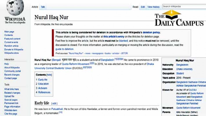 উইকিপিডিয়ার নিবন্ধে যুক্ত হলেন ডাকসুর ভিপি নুর